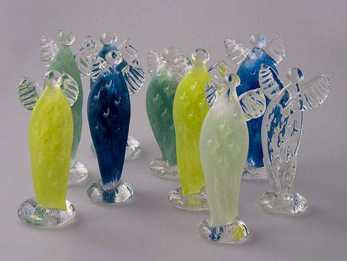 Anne Flohr har specialiseret sig i farvet, miljørigtigt dansk glas, som holdes i sarte pastelagtige farver. Hun mestre alt fra stager, krukker, vaser, skåle med og uden egetræslåg over i det mere skulpturelle. I forbindelse med julen laver hun især hjerteskåle, hjerter og engle i alle regnbuens forskellige farver.