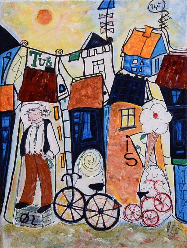 Malerierne kalders – Baggårdsminder, og er fortællinger fra en svunden tid, især fra København. Hendes værker opleves med små finurligheder og med små objekter fra dagliglivet, som f.eks. Madam Blås kaffekander, ældre emaljeskilte, og især cykler, da Anne-Lise Evensens far var cykelhandler. Husene bliver ofte lidt tegneserieagtige, da inspirationen ofte hentes i børnebøger.