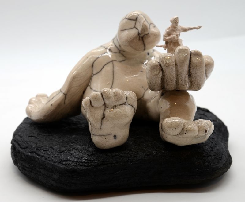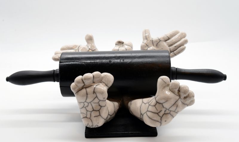 Charlotte Flicks skulpturer har store hænder – eller vinger om man vil, og de fortæller alle deres helt egen historie. ”Hænderne er menneskets vinger” læste hun engang et sted. Som oftest er historierne finurlige, humoristiske eller komiske, men der kan også snige sig enkelte sørgmuntre eller tragiske skæbner ind iblandt.