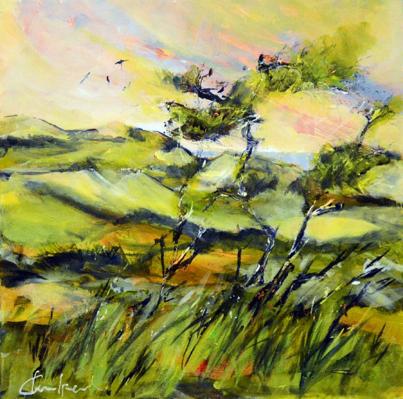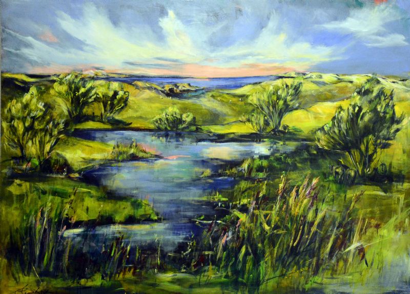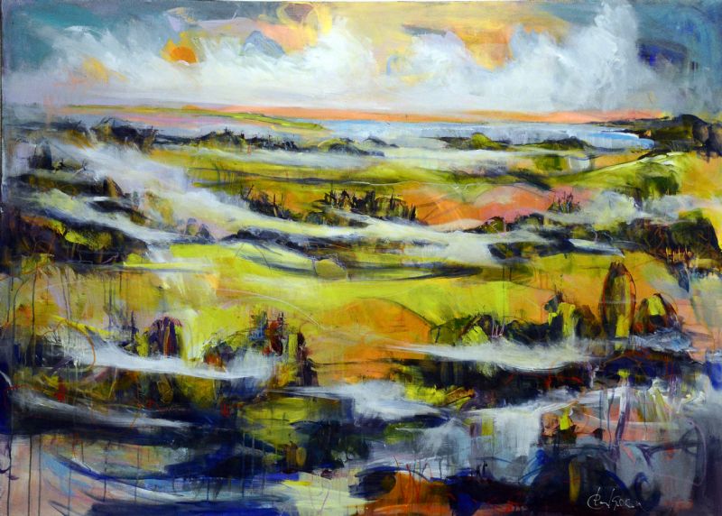 Inspirationen til maleriet samles i den vestjyske natur og dels på årlige studierejser bl.a. til Færøerne og Island. Lande hvor menneskets og dyrenes liv er underordnet naturens kræfter. Det er landskabets massive urkraft, lyset, de store vidder og den rå natur, som fascinerer hende, og som skaber grobund for de malerier der udtrykkes.