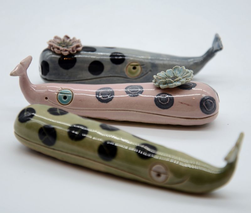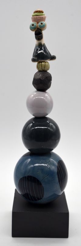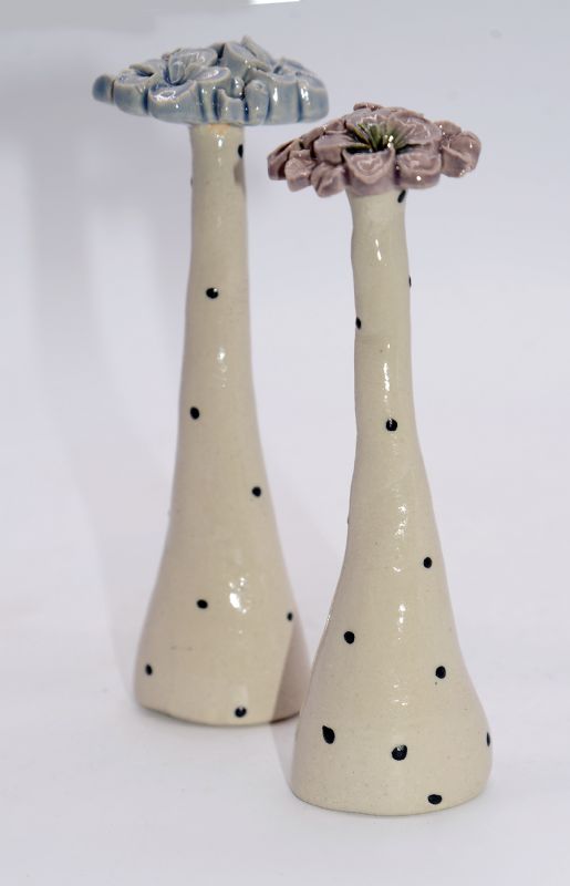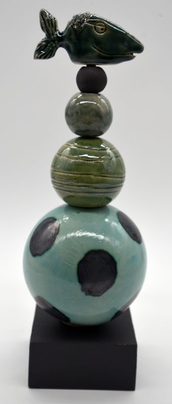 Hendes keramiske figurerer, har hun valgt skal være humoristiske, fantasifulde, og farverige, og det må man sige er lykkedes for hende. Hun arbejder frit og intuitivt og kombinerer det med meget bevidst kompositions- og farvevalg.