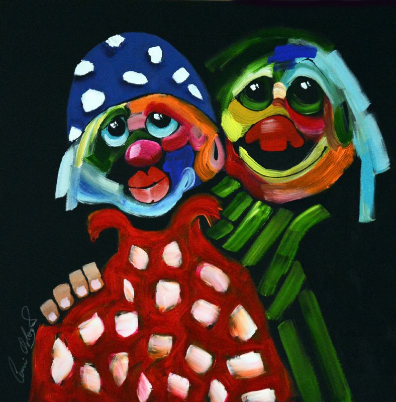 Hendes stærkt ekspressive figurer agerer som en slags "Stand Up" komikere på en scene. De er frække, fornøjelige og finurlige. De driver gæk med os, så vi ikke ved, hvor vi har dem. Vi må ikke glemme, at kunst også er til glæde – eller sagt på en anden måde: Livet er smukt.