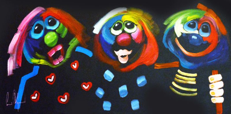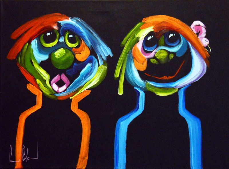 Her er malerglæde til stede, men nok så meget karakteristisk ved kunstneren er hendes humoristiske anslag. Hendes billeder vrimler med menneskelignede væsener, der er kejtede, vennesæle, forbløffende eller undrende. Det er som om, de spørger sig selv: "Hvad gør vi her"?