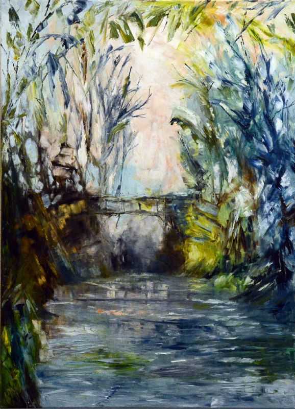 "I min tid på akademiet har jeg været igennem mangt og meget. Der er afprøvet teknikker inden for olie, akryl, vand, terpentin og farvekridt. Det har givet mig mod til at prøve andre metoder og udtryksformer. I det sidste års tid på akademiet, begyndte jeg at male med olie, det gav mig nye ideer og der opstod magi i farvens sprog og udtryk. Der er en fin klang i værkerne, de sprudler og giver energi, man mærker glæden i udtrykket. Nye værker er født, et nyt liv er begyndt!", udtaler Conni Østergaard Bønløkke.