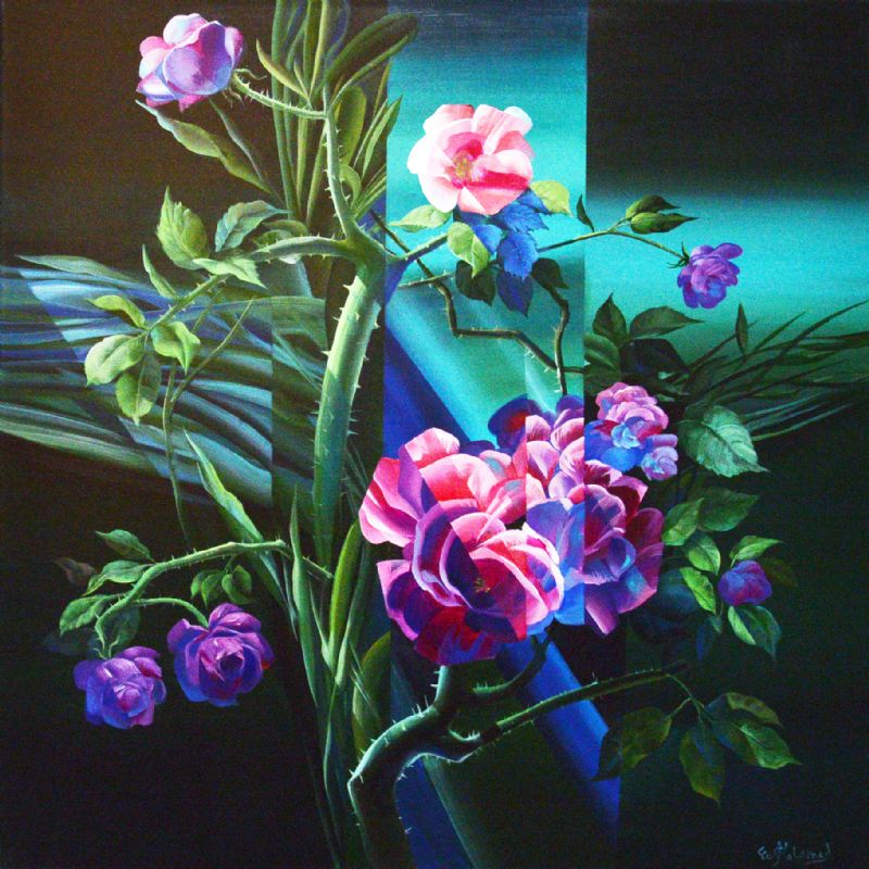 Det er svært at sætte begreber på Eugène Melameds billeder, da de favner både et fantasi-realistisk univers iblandet religiøse transformationer og metamorfoser. Centralt i Eugénes udforskning af mytologiske og nutidige konflikter står et spil af farver, form, lys og komposition, der smelter kontraster og anakronismer uløseligt sammen.