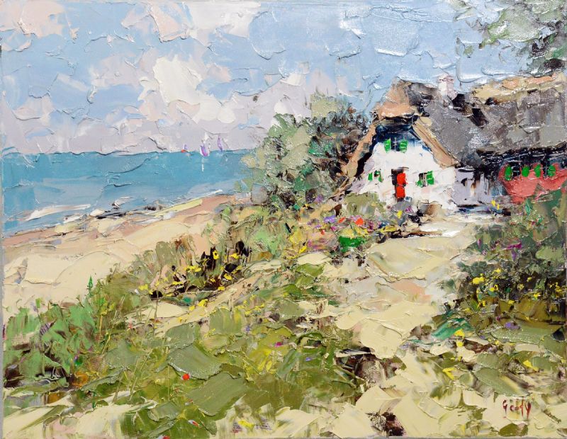Frank Getty har specialiseret sig i motiver fra storbyer og landskabsbilleder fra kystnære områder. Han anvender spartel, som giver hans malerier en speciel tyk overflade med mange lag maling der er helt unik inden for samtidskunsten.
