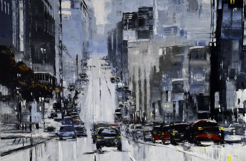 Derudover er han fascineret af storbyer, hvori han finder en kontinuerlig bevægelse og uhæmmet puls, som er til stede døgnet rundt. Der bliver aldrig mørkt bag vinduerne og bilerne suser afsted dag og nat. Stilhed findes ikke i en storby.