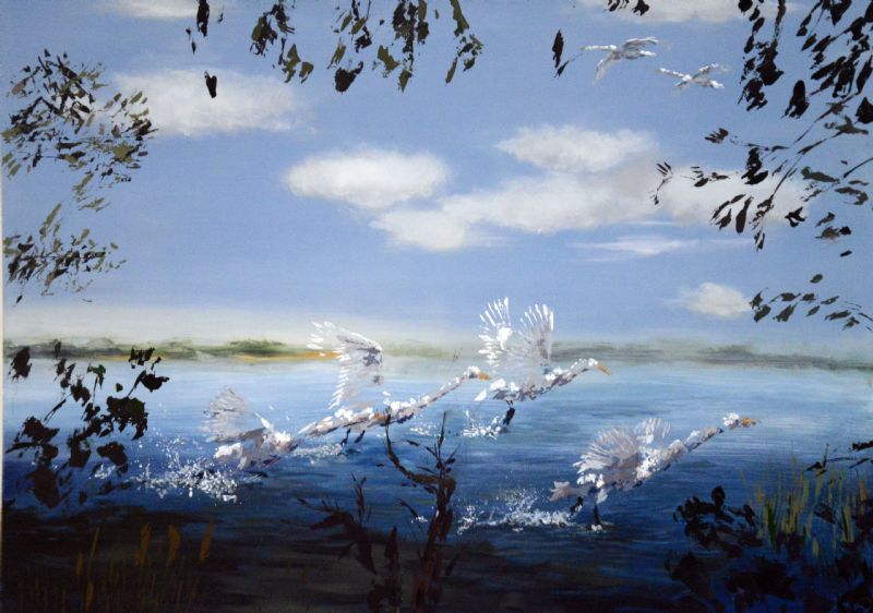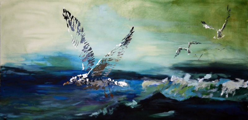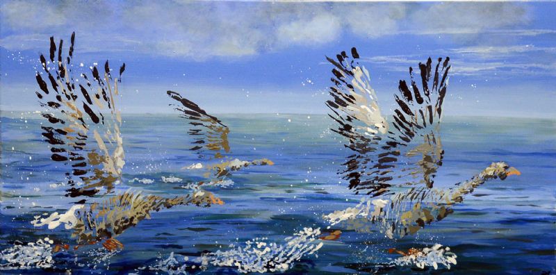Fugle kan noget helt fantastisk og Helle Lisberg skildrer de store flotte papegøjer, hvor vi bliver betaget af deres farvestrålende fjerpragt og vi oplever vildænder og havmåger i deres rette frie element flyvende frit over vandet.