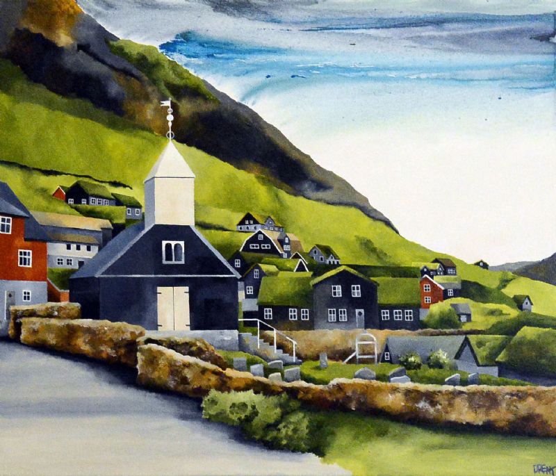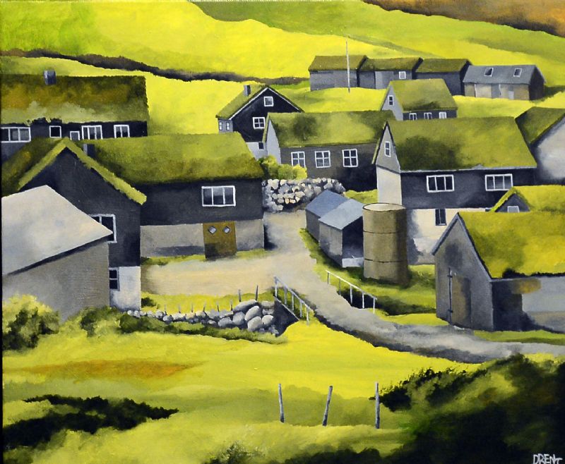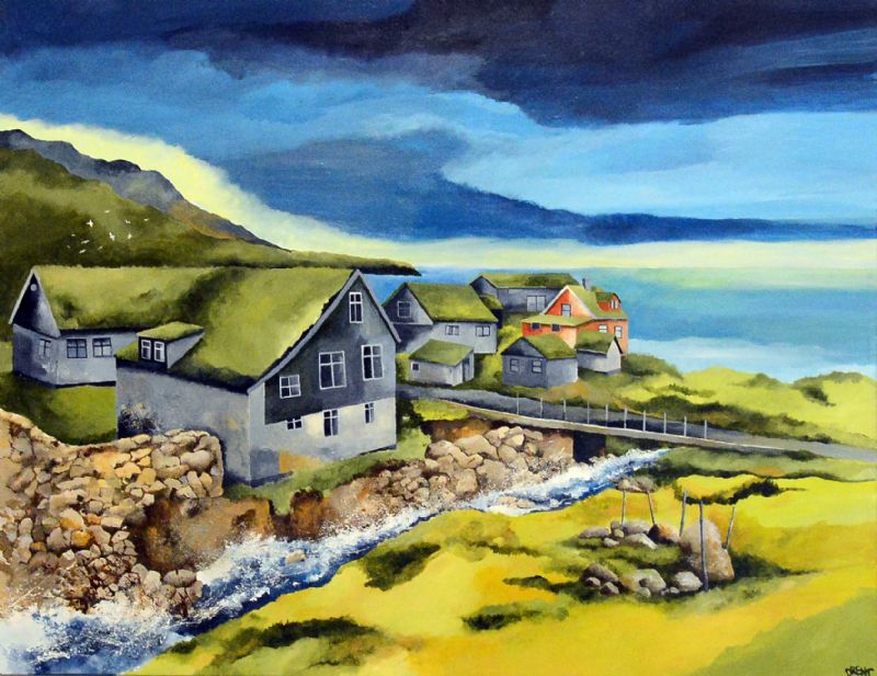 Flere studieture til det Nordatlantiske – navnlig Færøerne blev afgørende for Henriks valg af motiver fra de stormomsuste øer. Dens bygninger og dramatiske natur. Farverne er dæmpede med stærke kontraster ind imellem.
