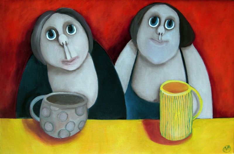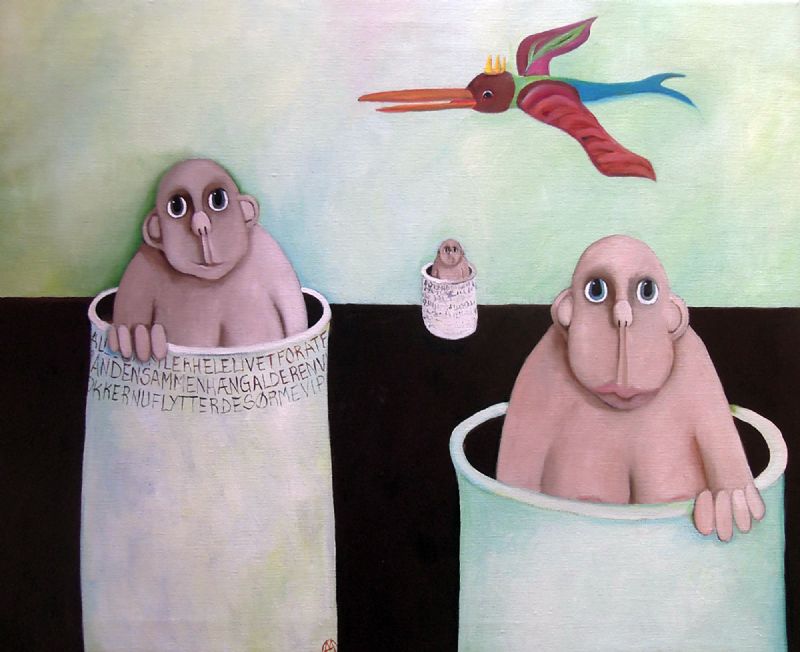 Inspirationen til maleriet fik jeg gennem nogle avisartikler, der viderebragte rygter om et europæisk kongehus’ eskapader. Jeg mener ikke, nogen er skyldige, før de er dømt, så jeg har tilladt mig at vaske dronningen ren.