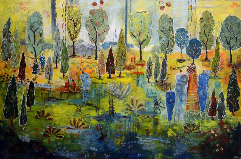 Lena Mandal har de sidste mange år haft travlt med maleriet, hvor hendes mangeårige karriere i teaterets verden kommer til udtryk. Hun har rod i det vestjyske, hvor der er højt til loftet og fuglene flyver i flok.