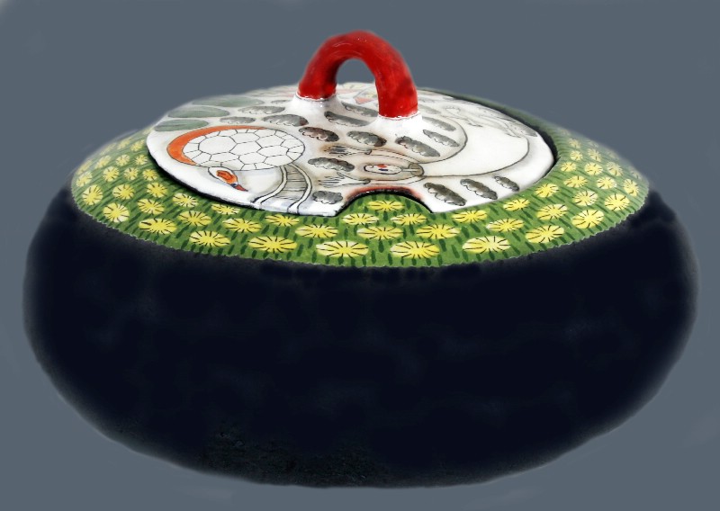 "Jeg benytter min helt egen raku teknik, med en elektrisk tørreovn, aske og træspåner. Hertil bruger jeg min helt egen glasur og blandinger af ler. Jeg bygger alle skulpturer op i hånden, og maler så på den glaserede overflade og bruger forskellige malingstyper og bittesmå pensler. Jeg maler små fragmenter af historier fra mit eget hoved og frydes, når beskueren betragter mine værker, som en del af deres eget livsforløb. Jeg elsker at maler på ikke geometriske overflader, som hånden har formet i en naturlig del af min skulptur. Jeg splitter ofte motivet op i flere områder, der enten side om side, eller på toppen og på bundens indvendige side, danne den historie, jeg gerne vil have frem. En historie kan således starte et sted, fortsætte og reflekteres andetsteds på skulpturen", udtaler Line Bekeriné.
