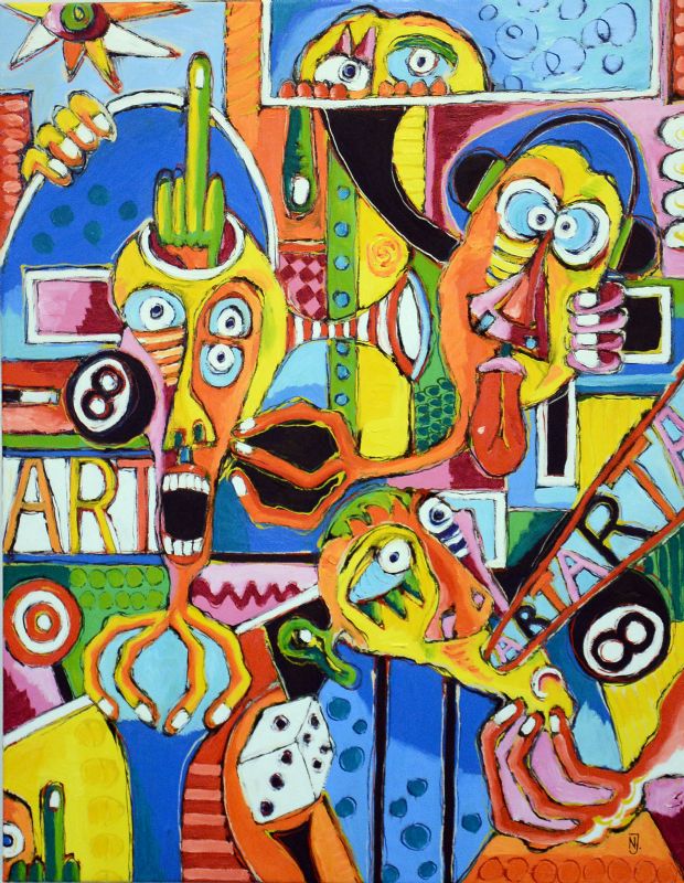 Niels Jensen er en af de nye, spændende kunstnere, der gør sig stærkt gældende i moderne samtidskunst. Han tager afsæt i Cobra gruppens abstrakte ekspressive stil og finder på samme måde sin inspiration blandt børns tegninger og i den nordiske mytologi etc. Dog adskiller han sig farve- og detaljemæssigt klart fra Cobra gruppen. Hans humoristiske motiver ligger langt fra, hvad Cobra gruppens medlemmer præsterede. Hos Niels Jensen kan man tydeligt se, hvad 40 år har gjort ved samfundsudviklingen.