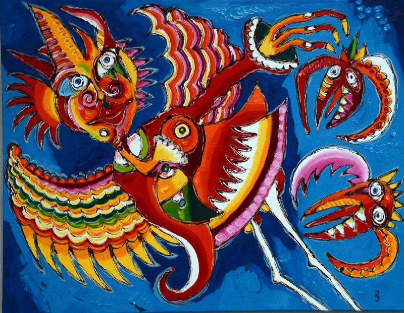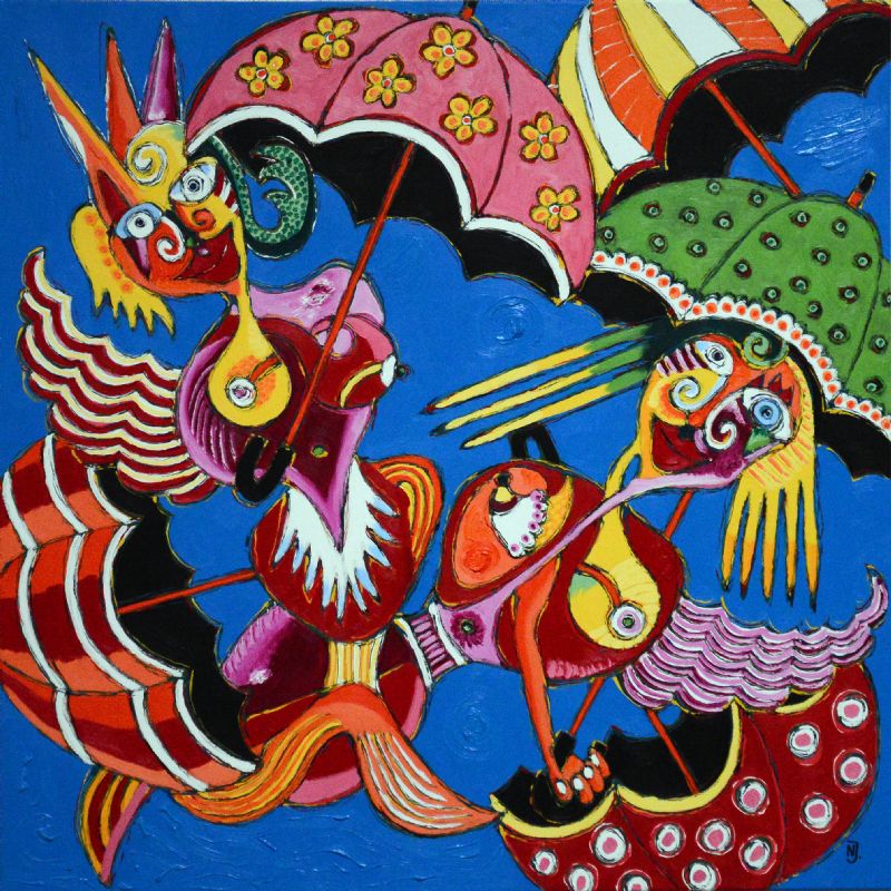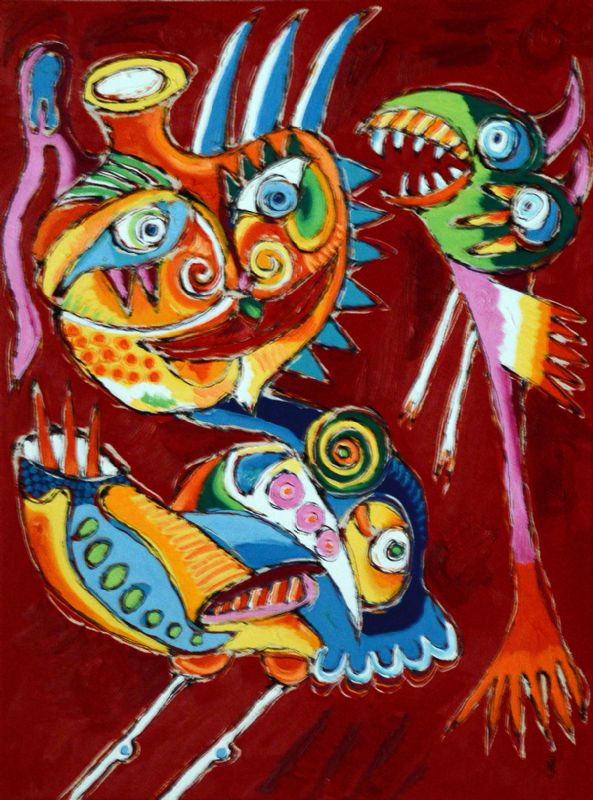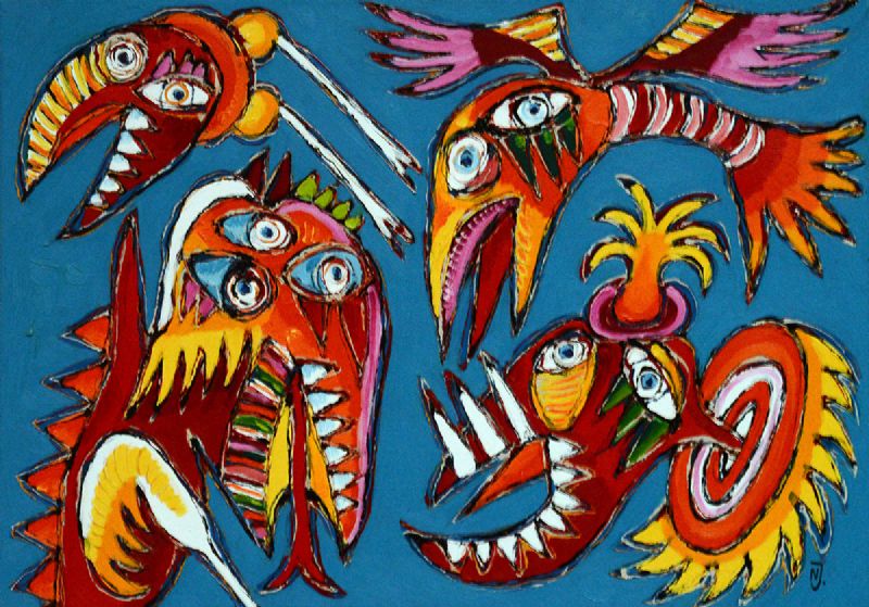 De koloristiske væsner danner associationer til det ubevidste, og deres bevægelser og ansigter viser en umiddelbar lethed, men i kraft af værkernes letgenkendelige og menneskelige symbolik vidner de om flere lag, der stiller menneskets basale følelser frem til skue.