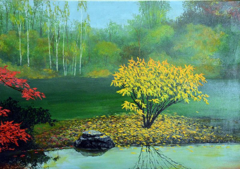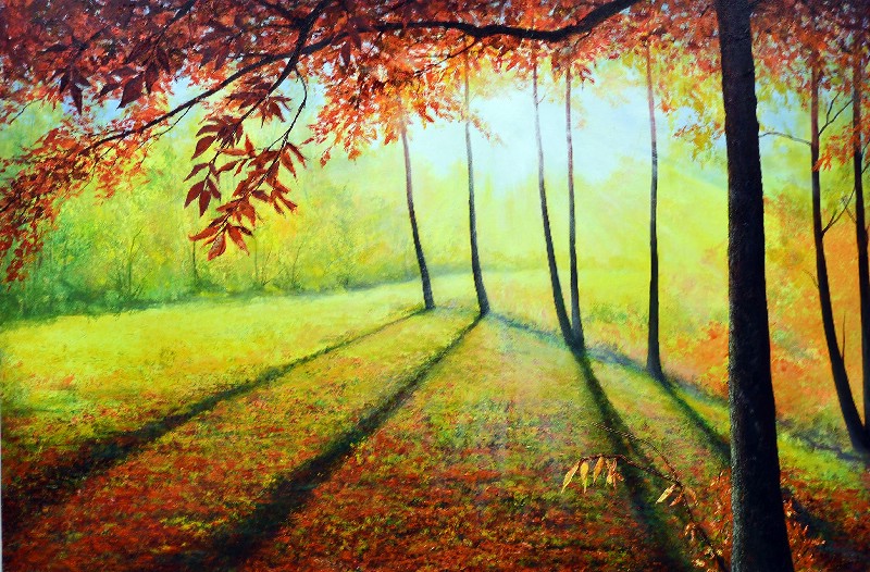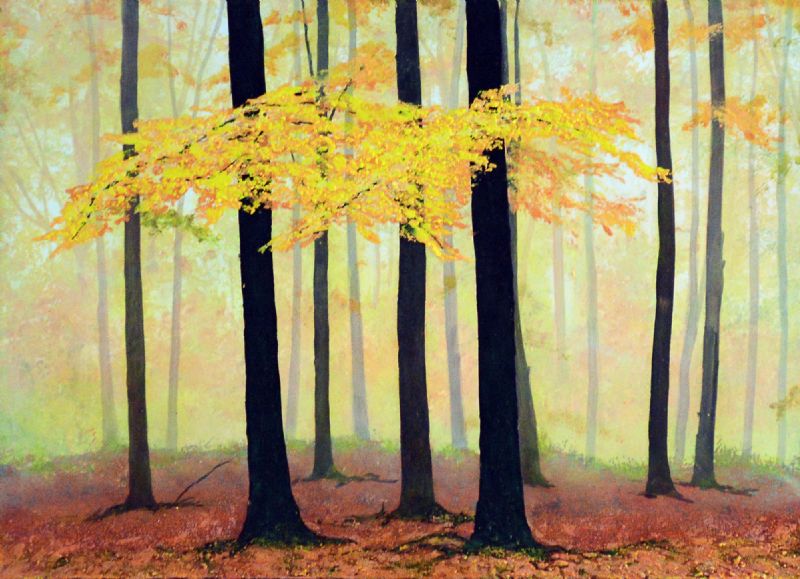 Stas Kuduk maler sine værker af naturen med morgendisen eller tågen som gennemgående elementer.