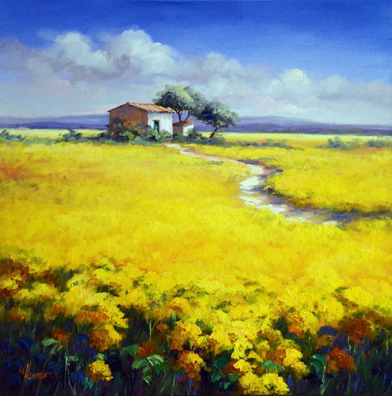 En lysende gul rapsmark, en varm rød valmuemark, en halvåben havelåge, en gadecafé der inviterer til at træde indenfor, er steder og øjeblikke, der udelukkende venter på at blive opdaget. Det er indtryk som disse, der får følelserne frem hos Ute Herrmann, som hun fanger og fastholder i sine oliemalerier. Altid i formater der svarer til det indtryk, hun har dannet sig.